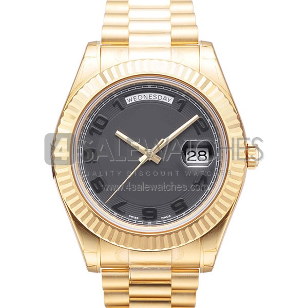 Our SWISS DAY-DATE II STYLE GOLD GREY ARABIC 41MM wrist watch with NO-MARKINGS, NO Brand or Trademark logo-prints-engravings-inserts on entire watch