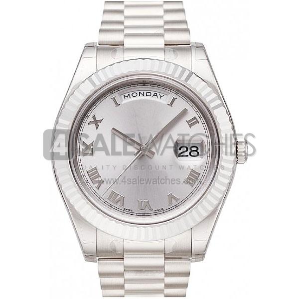 SWISS DAY-DATE II STYLE WHITE GOLD SILVER ROMAN 41MM