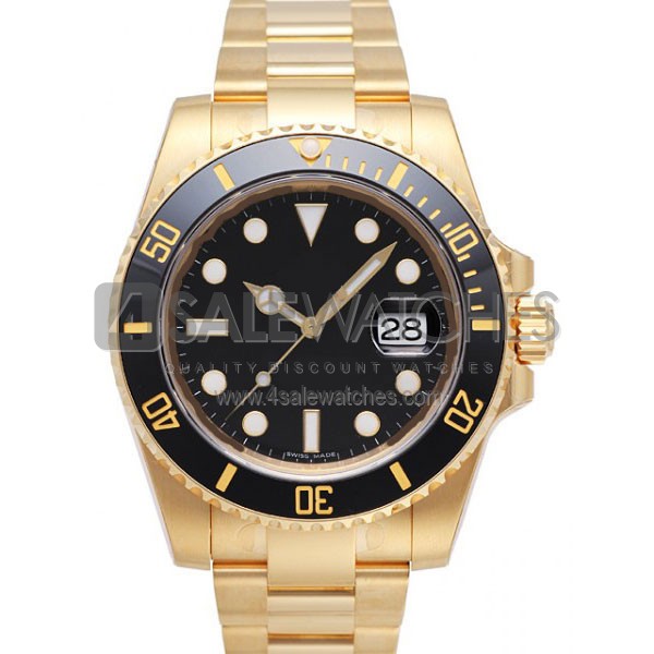 SWISS SUBMARINER STYLE GOLD BLACK CERAMIC 40MM