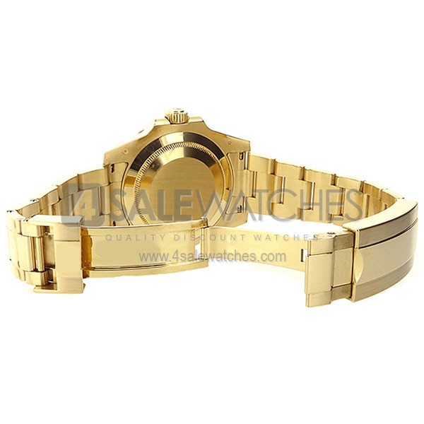 Our SWISS SUBMARINER STYLE GOLD BLACK CERAMIC 40MM wrist watch with NO-MARKINGS, NO Brand or Trademark logo-prints-engravings-inserts on entire watch